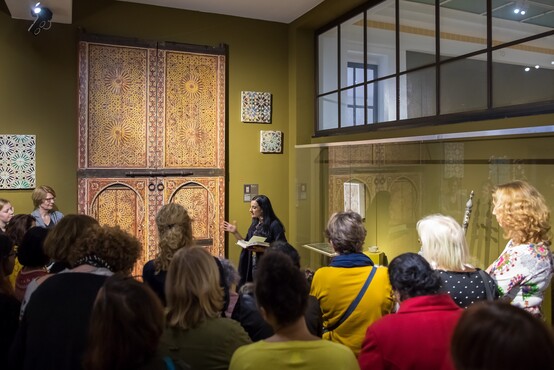 Deze collectie islamitische kunst vertelt vele verhalen. Ze gaat over vakmanschap en ambacht, over ornamentiek en geometrie, over verbinding tussen oost en west en een geschiedenis van 1000 jaar van een gebied van Indonesië tot Marokko. Toch kunnen de objecten voor bezoekers ook ‘ver weg’ voelen, omdat zij in een ver verleden zijn gemaakt en de makers onbekend zijn. We besloten daarom ook verhalen te vertellen die een brug slaan naar de belevingswereld van de bezoeker. Het museum koos daarbij de gemene deler van zintuiglijkheid. De vele kommen herinneren aan eten en drinken, de instrumenten vertellen verhalen in klanken en de teksten op de voorwerpen zijn verzen uit de Koran, poëzie of andere literatuur. Daarvoor werkte het museum samen met 18 vertellers die deze verhalen herinneren en nog vertellen.