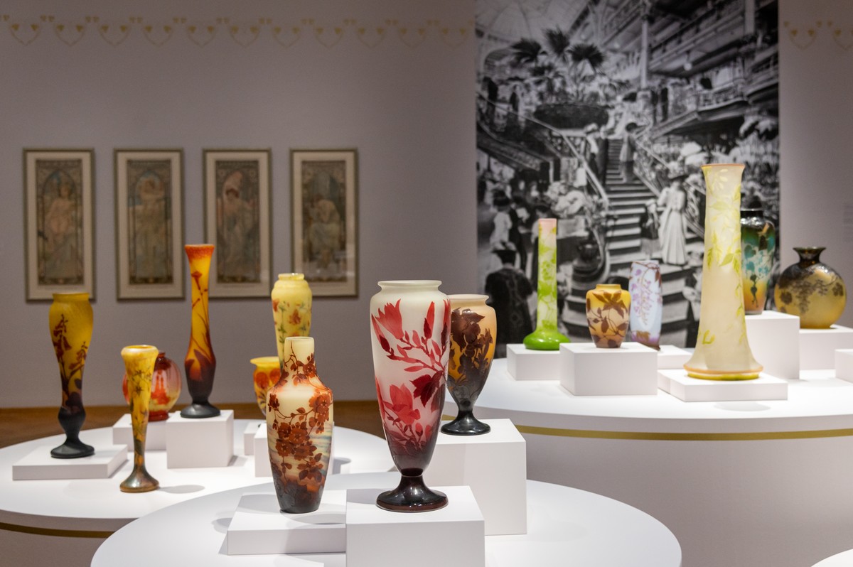 Le Verre Français, Vaas met decor van Fuchsia’s, ca. 1910, in de vorm geblazen, geëtst glas, h. 24,5 cm, Kunstmuseum Den Haag